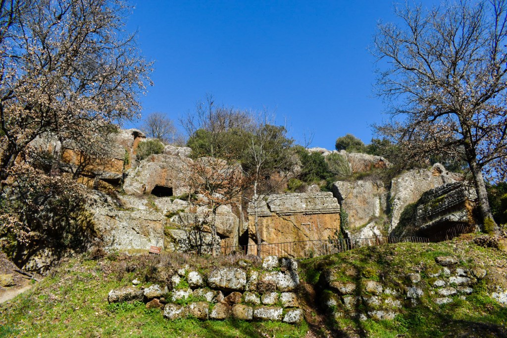 You actually arrive at the top of the Necropolis that was built into the hill. The presence of an ancient civilisation only becomes clear once you have clambered down the stair path to the bottom of the hill and turn around to face it. The tombs are large blocks of tufo carved into the cliff! My research (and not true historical knowledge) said that the bodies were put inside sarcophagi that are widely still present there.