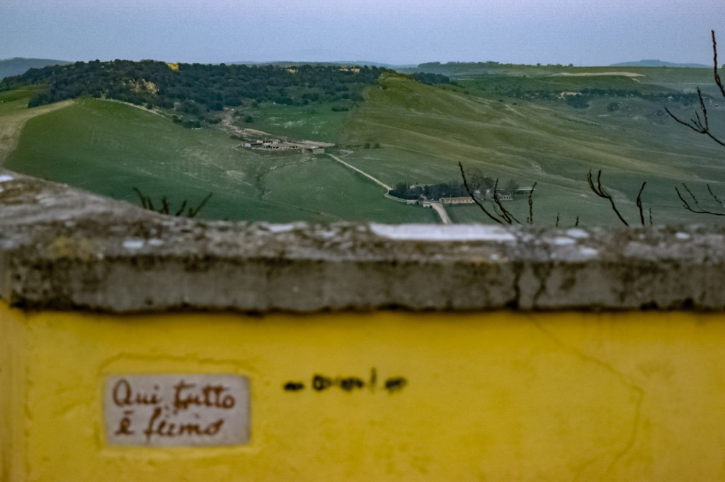 Another colour, however, was to soon swallow my vehicle: muddy brown. In my joyous teary state, I had left the main road and was headed towards Norchia. 1.5km. At this point I was not alarmed that I was on a narrow road between two large orchards: these abandoned sites are often found on little historical islands surrounded by farming land. The first sign of alarm, however, did come as I crossed into the dirt road and traversed my first pothole. A Fiat 500 is a wonderful little city car. Not so wonderful for off-road driving. The road had essentially become a series of mini ponds that got progressively deeper. I know. I know! The logical reader is thinking: why didn’t you turn back? Well, you clearly are not acquainted with my stubborn sense of determination. You are, after all, talking to the crazy girl who quit her job in the middle of a pandemic. Fact: I did not turn back. Also fact: the third pothole got me. As I edged in I knew that I had hit my limit. Perhaps hit is not the right work. I was sunk. This was not your regular Australian bush pothole. It was an Italian sinking pit! Being the milennial that I am I Googled “how to unbog a car”. It suggested reversing out. Logical enough, but I had tried that and had plunged further in. It was at the point that I saw the car sloping and felt muddy water tickling my feet that I decided to abandon ship.