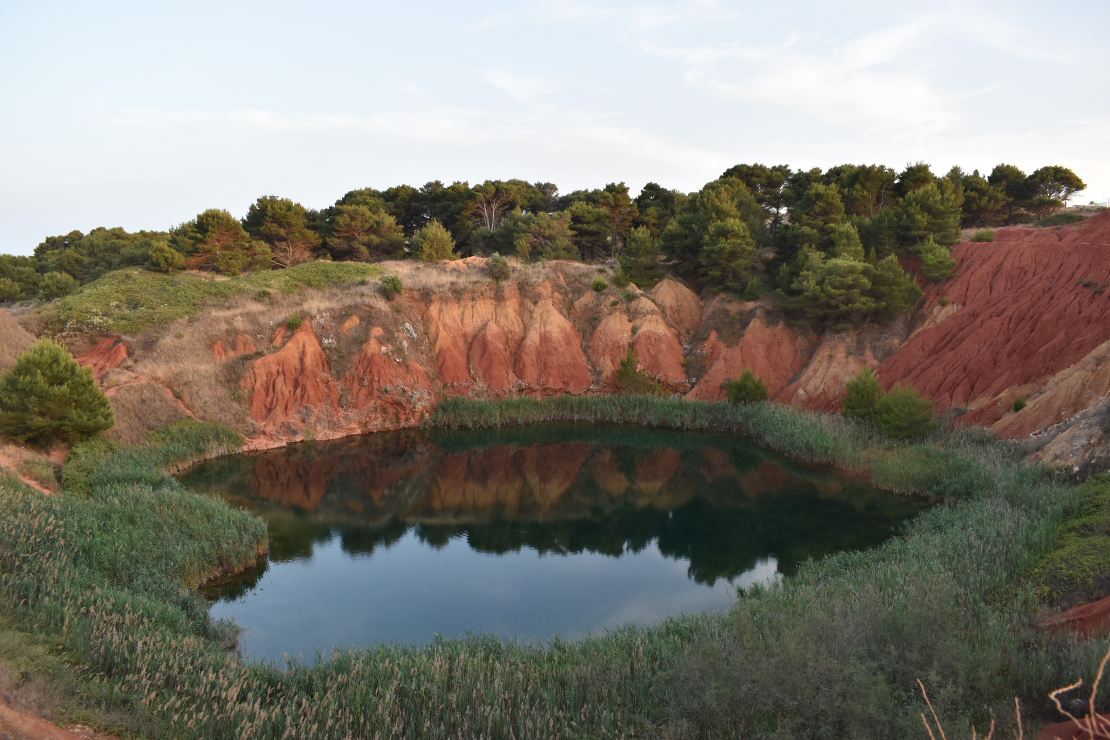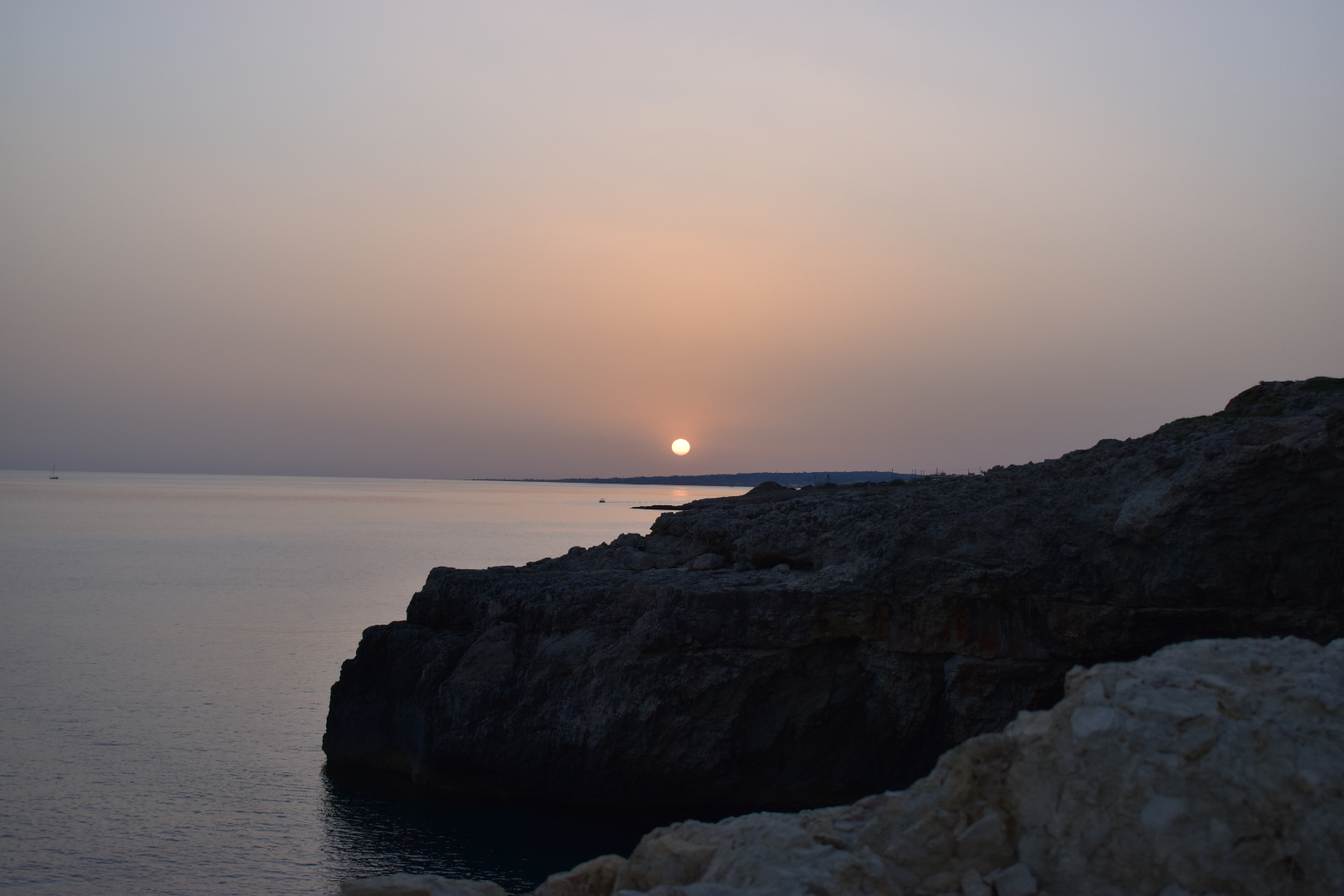 There were three occasions on this trip in which seeing a sunset caused some seriously haphazard driving as I frantically chased a burning orange dot gliding across the sky. The first of these came from the desire to see the Cava di Bauxite (Bauxite Cave) at sunset. After a day chasing carparks (yes, book a private beach on a Sunday and lounge there. NEVER do what I did and wing it) that continued to elude me, having a conniption and deciding to retreat to the Otranto port (also photo and dip-worthy), my housemate E consoled me by telling me that the Bauxite caves were “una meraviglia” at sunset. After a frantic drive less than ten minutes from Otranto, I evaded paying the carpark fee by running with my camera and leapt through the sharp vermillion sand to the caves. Dusty pink light stretched towards the caves as I darted around fellow sunset lovers to reach the most advantageous viewpoint.
