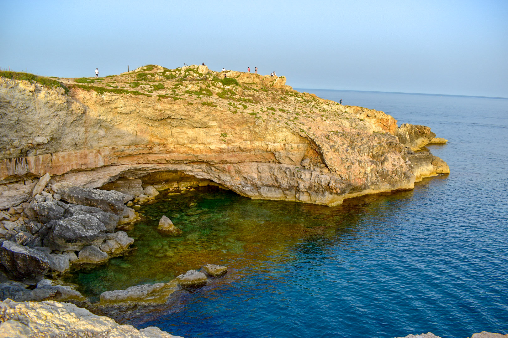 Well, I took a wrong turn, then missed the carpark and frantically pulled over to find my “must-do” sightseeing on Google Maps. The park was perched near the edge of a town facing the azure waters. A distant flamboyant umbrella flittering in the distance caught my eye. An elderly couple had forgone the likes and hashtags and had perched themselves on a small cliffside that seemed to just drop into the sea. I had my camera with me, so I clicked the car shut and edged closer trying to photograph them like some wannabe anthropologist snapping authentic Italians in the wild. Stealthily approaching my prey, I spotted some steps carved into the rocks that led down to an inlet. Creeping closer, this time to the edge of the rocks, I peered to see waters below. The morning light burnished the sand that blanketed the bottom of a natural pool. The glassy aqua waters were like rippled blown glass. I remember spending and hour there with my humble audience, but felt like I had this special place all to myself. Afterwards, I peeled on some clothes and went to the “Poetry Cave”. It was spectacular, yet as I subconsciously ducked to the humming of multiple drone cameras and listened to drunk Italians singing to music on their portable speaker, I decided that I should have stayed in that magic.