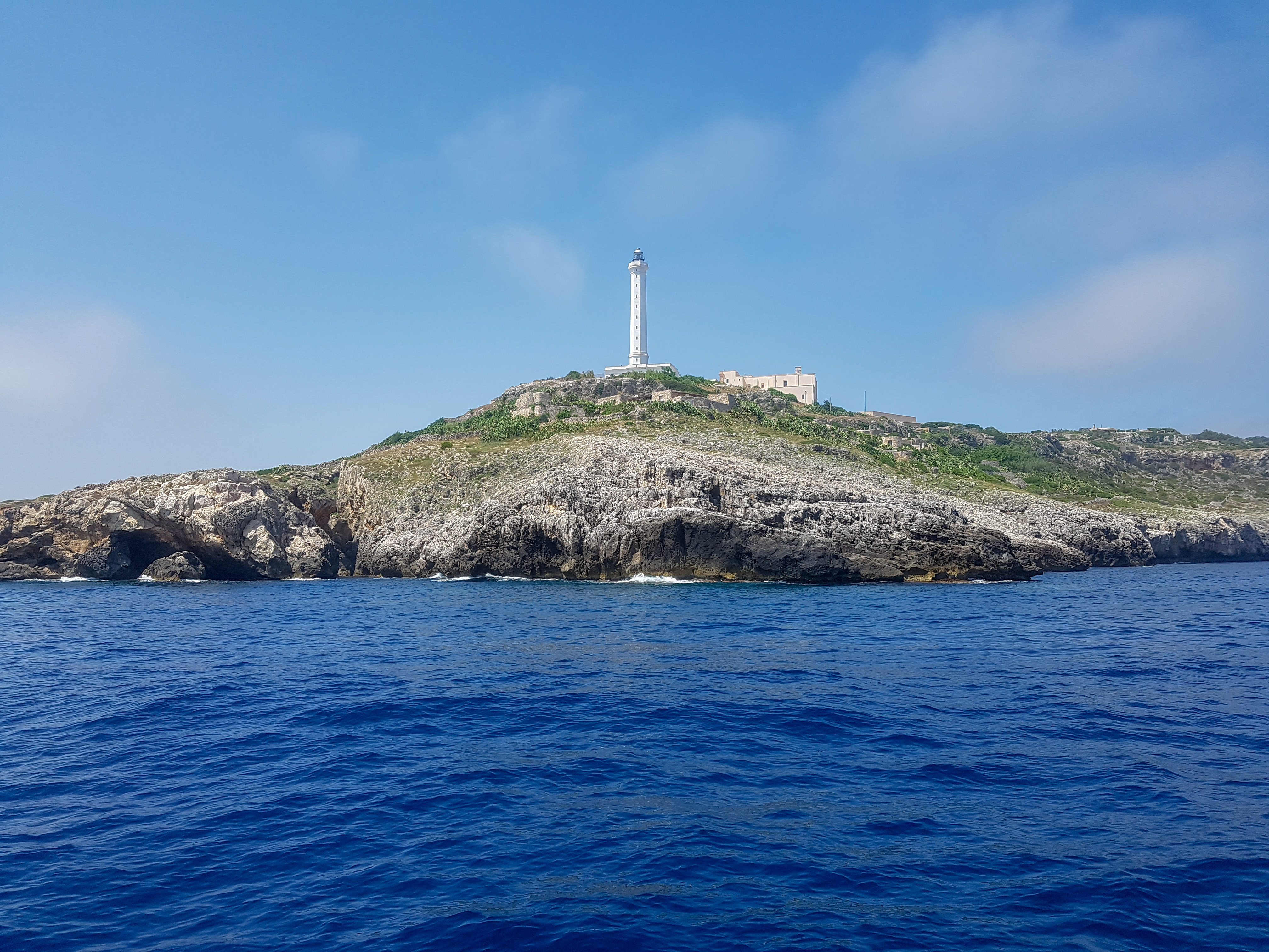 After spending a day swanning, sizzling and sauntering at a Lido (private beach) and treating myself to a seafood lunch, I decided that I wanted to head, finally to Otranto, to a restaurant that A (more on him later) recommended to me. As usual though, I was early and decided to veer off along the Litoranea (coastline) road from Otranto that heads towards the bottom of Puglia in Leuca. My way-too-keen AirBnB host had told me that we could ride up and down it one day and enjoy a sunset together (cue either cheesy romantic music or gagging depending on how cliched you are), but it was almost sunset and here I was doing it on my own. It was wonderful to stop sporadically to see the inky blue depths that clung to the craggy cliffs. Worth stopping at was the Punta Palascia lighthouse. Nautical info suggests that this spot, which marks the Capo d’Otranto, is where the Ionian and Adriatic Seas meet. As you approach the lighthouse, you are overcome with this immensity of how small we all are.