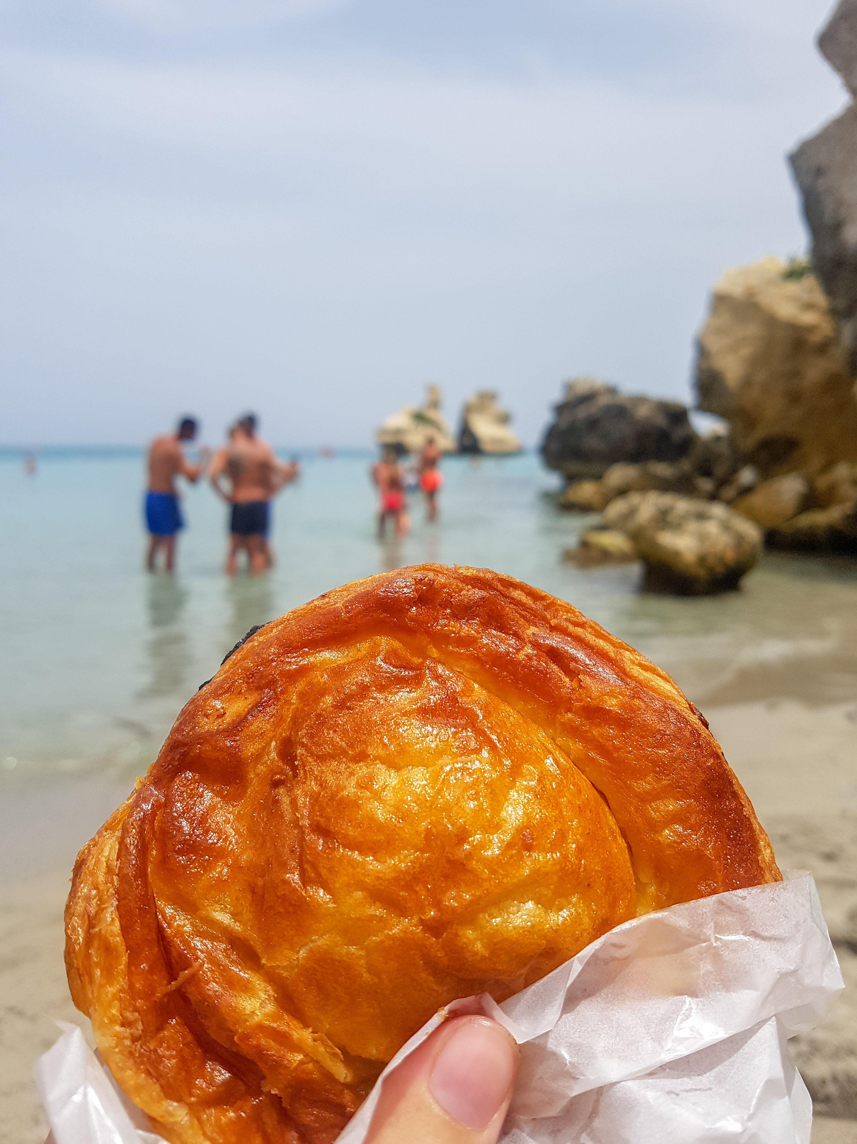 So I am smugly going to tell you: this is a place near Torre dell’Orso, but find your own spot darlings! I love promoting an area that is dear to my heart, but I am so fond of certain places because they are not on tourists’ Instagrams. On my first full day with the Fiat Panda, I had my heart set on heading to Otranto as a person I am close to said it is his favourite place in Salento. Before that though, I started my day with a tip from E (housemate): Dentoni. I love baked goods. The wafts of the baker’s oven are like a warm embrace that I cannot refuse. I had already, by this stage, slipped into the habit of having the Pasticciotti with a Leccese coffee for breakfast, but nothing compares to gulping them down fresh from the oven. I sat at Dentoni, a bakery overlooking the sea, and decided, at 7.30am, that a cheeky dip in the sea was what I needed. After slinking into the sultry warmth of the waters near the bakery, I decided to go for a sporadic drive towards the Grotta della Poesia, which was nearby.
